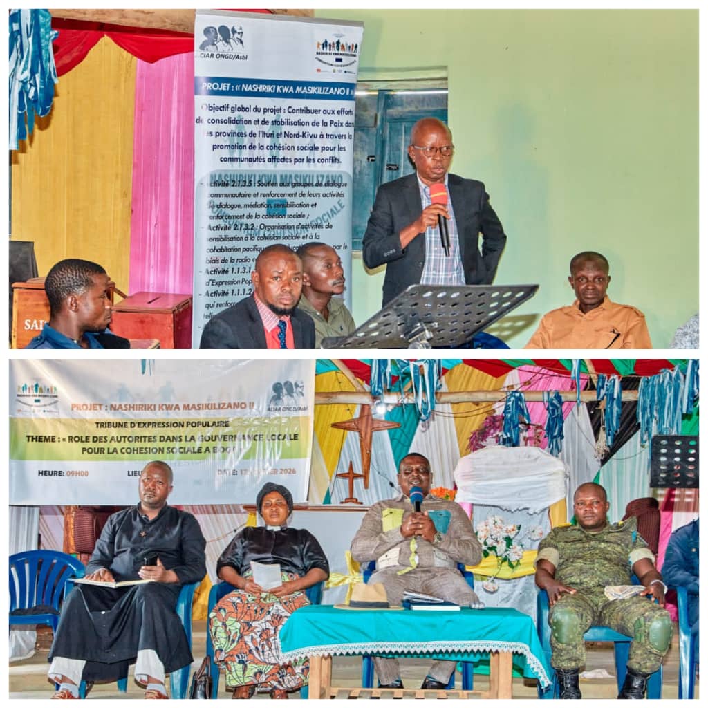 La chefferie des Bahema Boga a accueilli ce jeudi, 12 février 2026, une tribune d’expression communautaire organisée par ACIAR dans le cadre de son projet « NASHIRIKI KWA MASIKILIZANO », une initiative axée sur la promotion du dialogue et du vivre-ensemble.