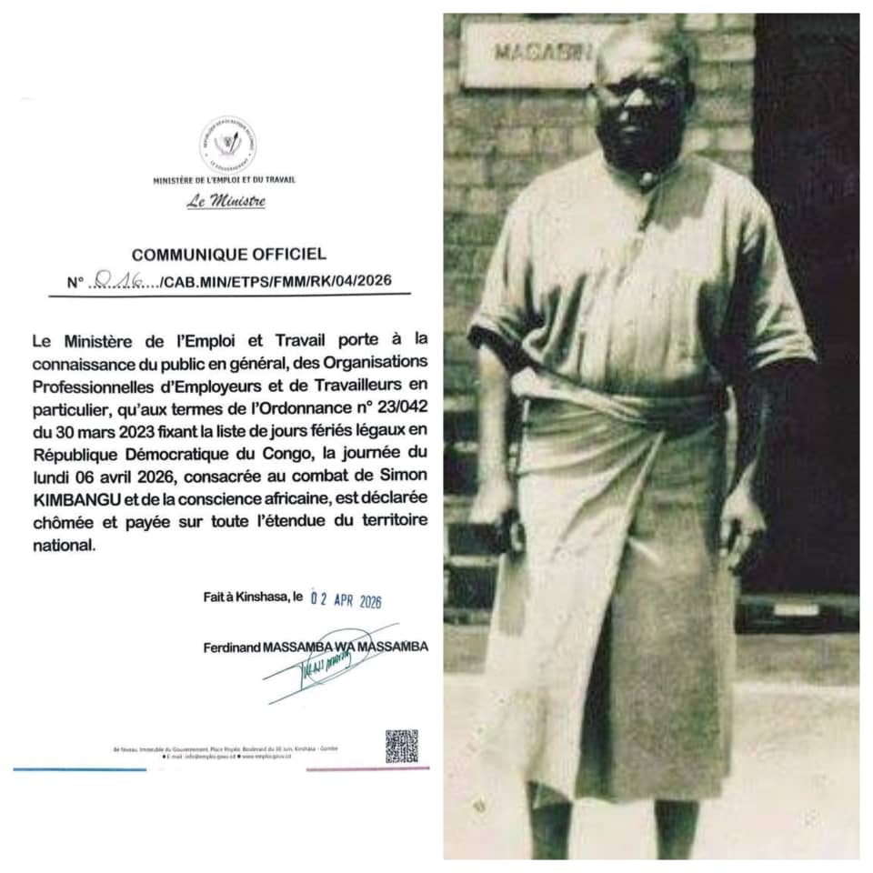 Le gouvernement de la République démocratique du Congo a officiellement déclaré la journée du lundi 6 avril 2026 chômée et payée sur toute l’étendue du territoire national, à l’occasion de la commémoration dédiée à Simon Kimbangu et à la conscience africaine.